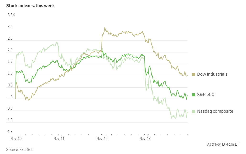 Following the initial relief on Wall Street from the conclusion of the US government shutdown, investor sentiment shifted on Thursday toward apprehension regarding an impending influx of delayed economic data, prospects of a shift monetary easing policy, and elevated valuations among leading technology companies.