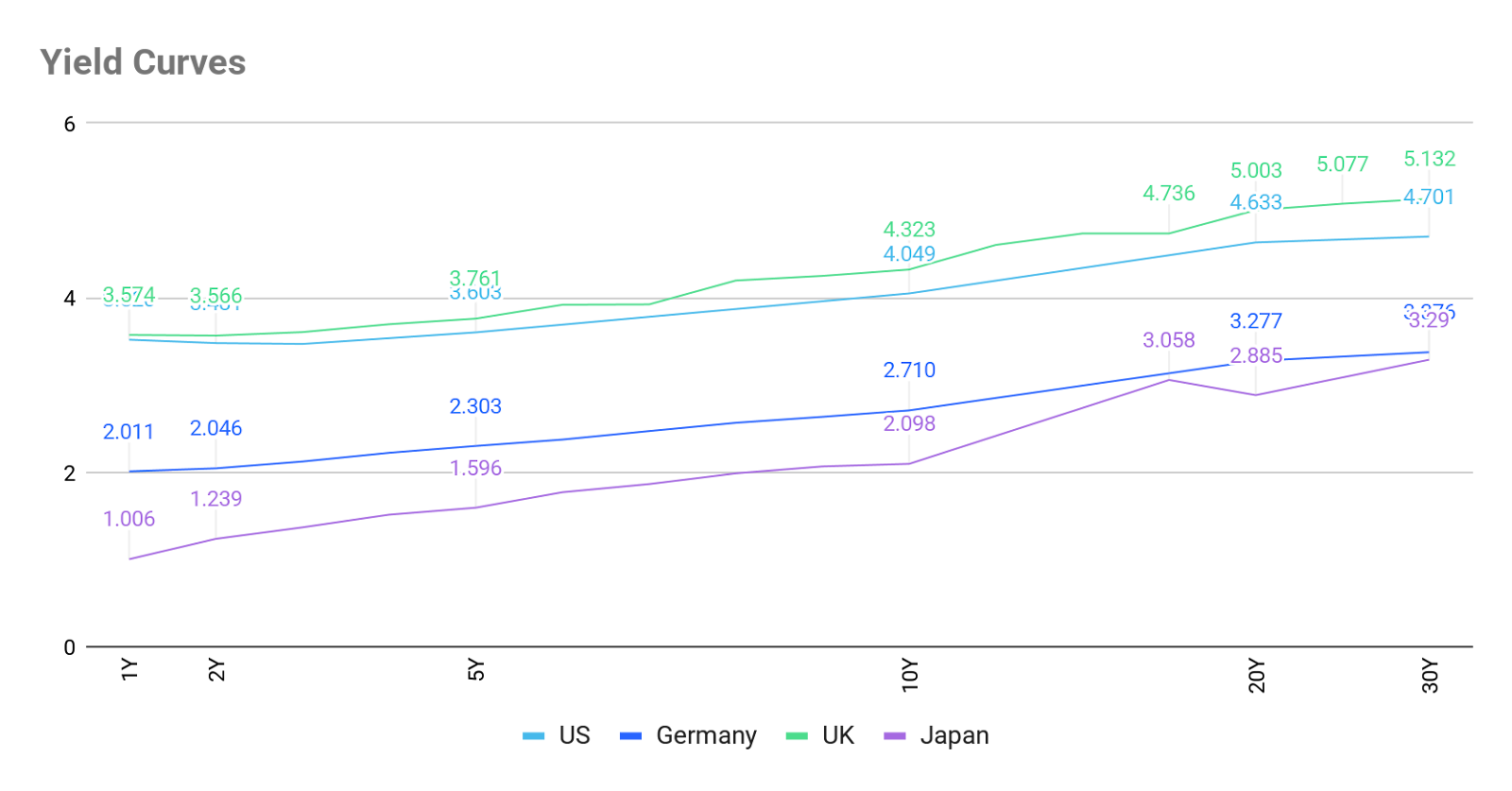 In afternoon trading, the yield on the 10-year Treasury note increased +1.4 bps to 4.049%, while 30-year yields rose +1.5 bps to 4.701%. At the short end of the curve, the two-year yield, closely linked to interest rate expectations, edged up by +0.9 bps to 3.481%.