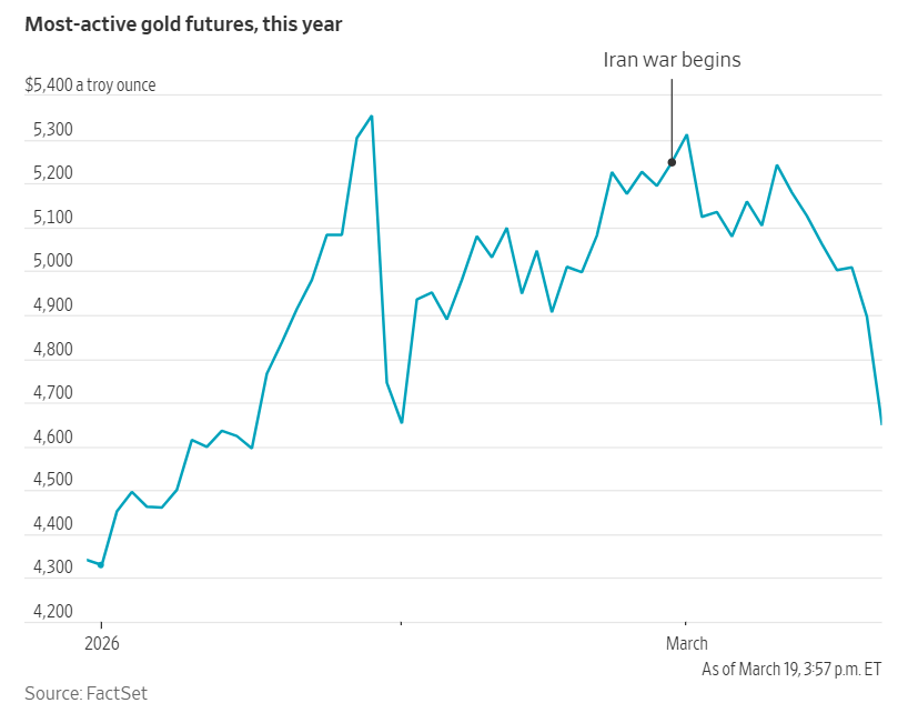 Spot gold dropped -3.42% to $4,652.75 per ounce, reaching its lowest level since early February.