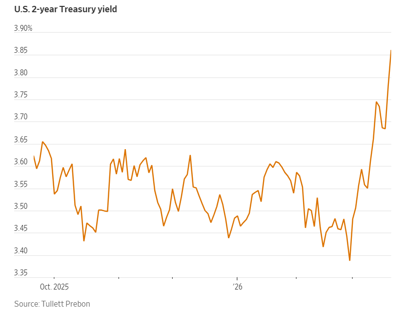On Thursday, yields on short-dated eurozone government bonds surged as traders anticipated additional interest rate hikes from major central banks. This development occurred alongside a sharp rise in energy prices, driven by the ongoing conflict involving Iran, even as the ECB opted to maintain its borrowing costs unchanged.